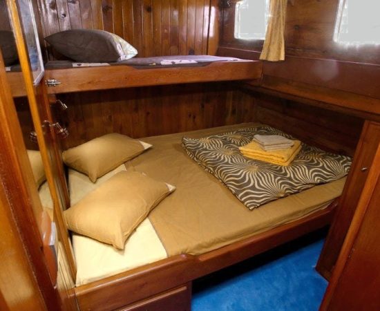 – 1 smaller single or “mini-double” cabin with small WC/shower on the sink