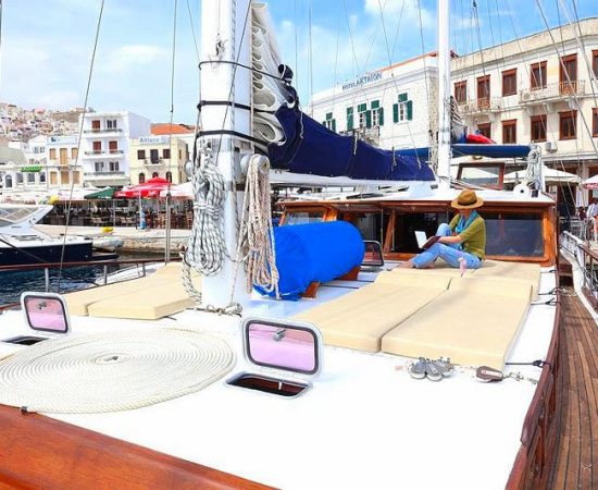 Chartering a Yacht in Greece – The s/y Anatolie. Come aboard the traditional sailing vessel – the s/y Anatolie and cruise the beautiful Greek islands aboard this superb wooden yacht! Fit for up to up to 9/10 adults – 12 passengers with children (5 cabins) + crew